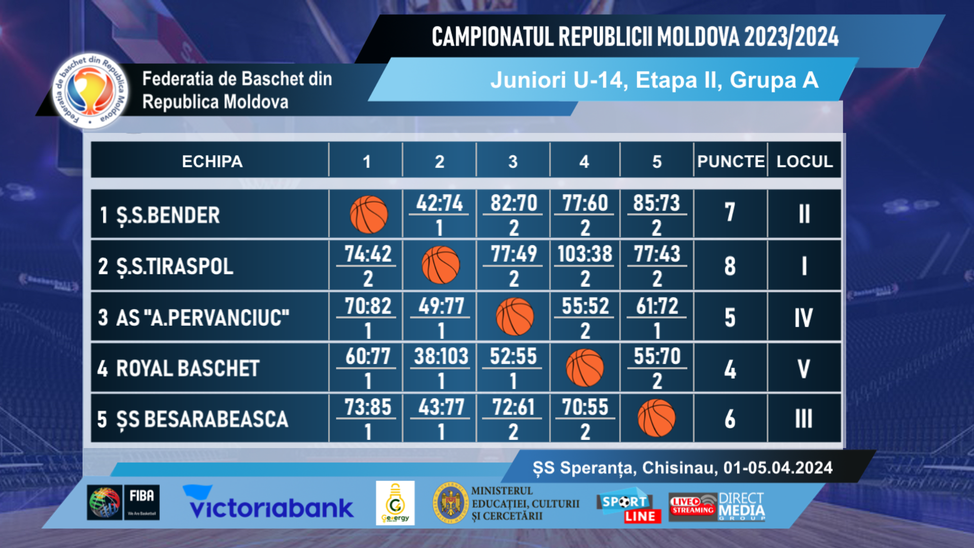 Матчи состоятся завтра, 6 апреля в зале Кишинёвской спортивной школы “SPERANTA” (ул. Ион Крянгэ, 47/2).