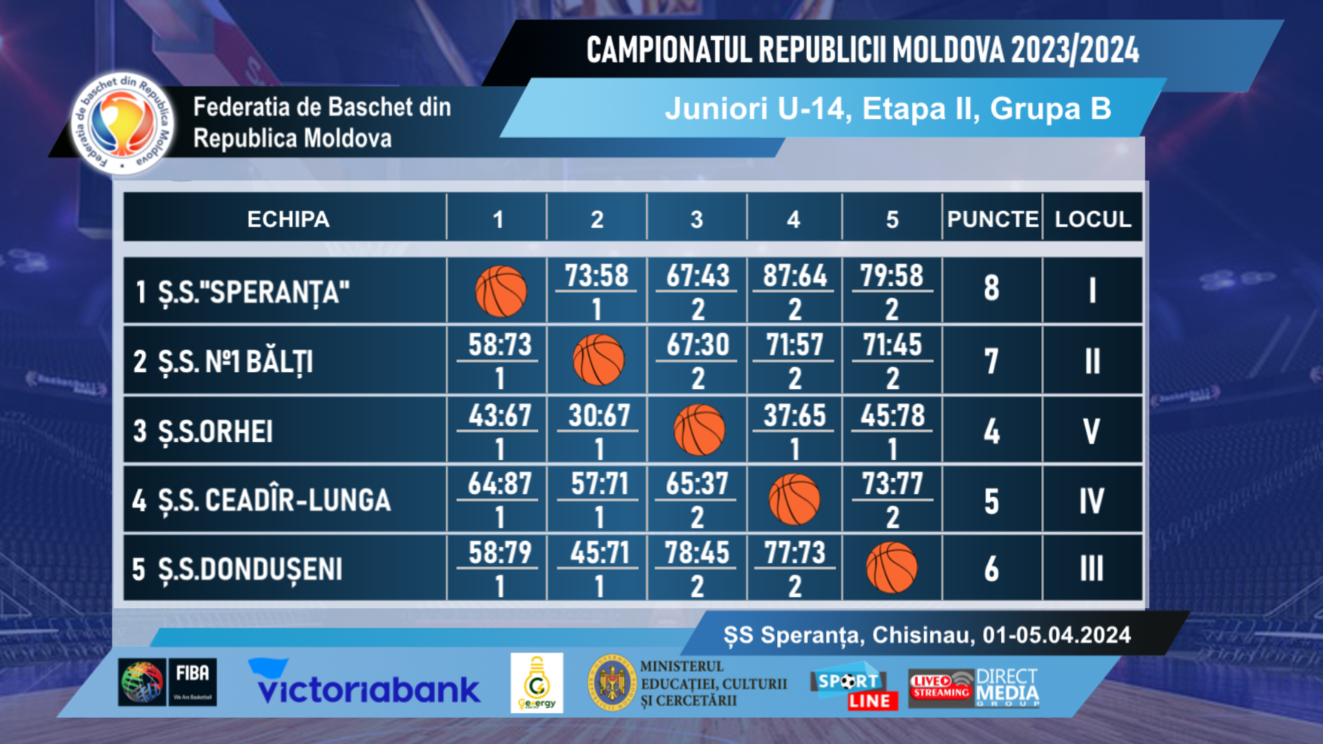 Команды из группы В, прошедшие в финал: “Ș.S.”SPERANȚA” (Кишинёв), “S.Ș.S. 1 BĂLȚI” (Бельцы) и команда спортивной школы города Дондюшаны.
