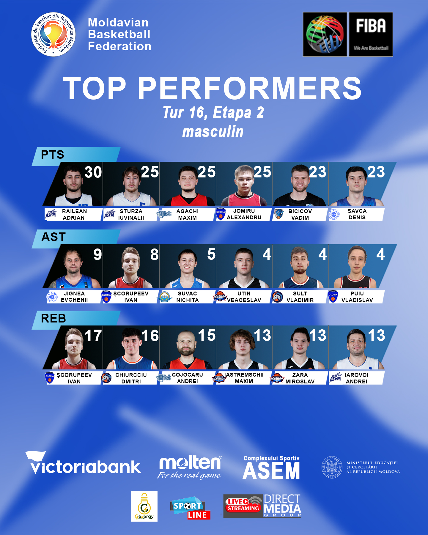В 18:00 матчи 17 тура 2 этапа мужских команд начнутся с игры «UTM» (Кишинёв) — «SSS 1 ACADEMIA» (Бельцы).