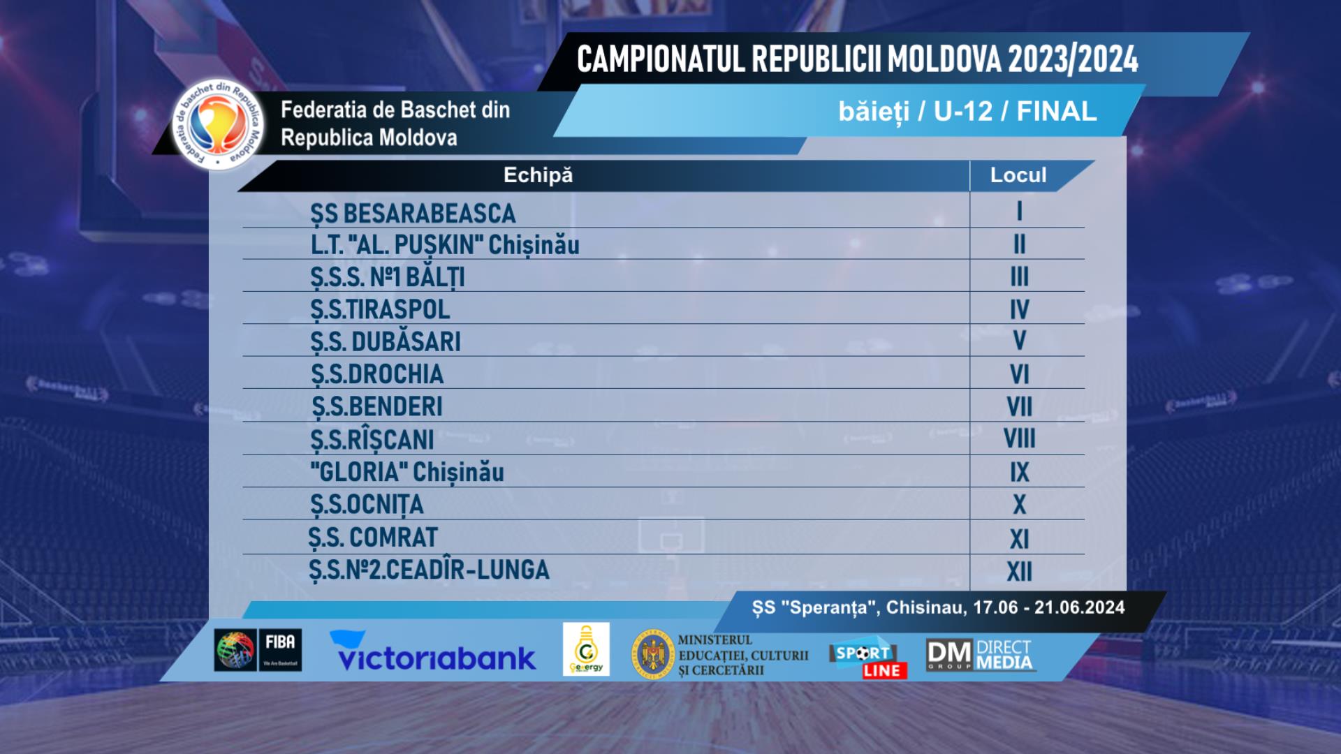 Символическая пятёрка категории U-12 (мальчики) сезона 2023/2024 Национального чемпионата РМ: