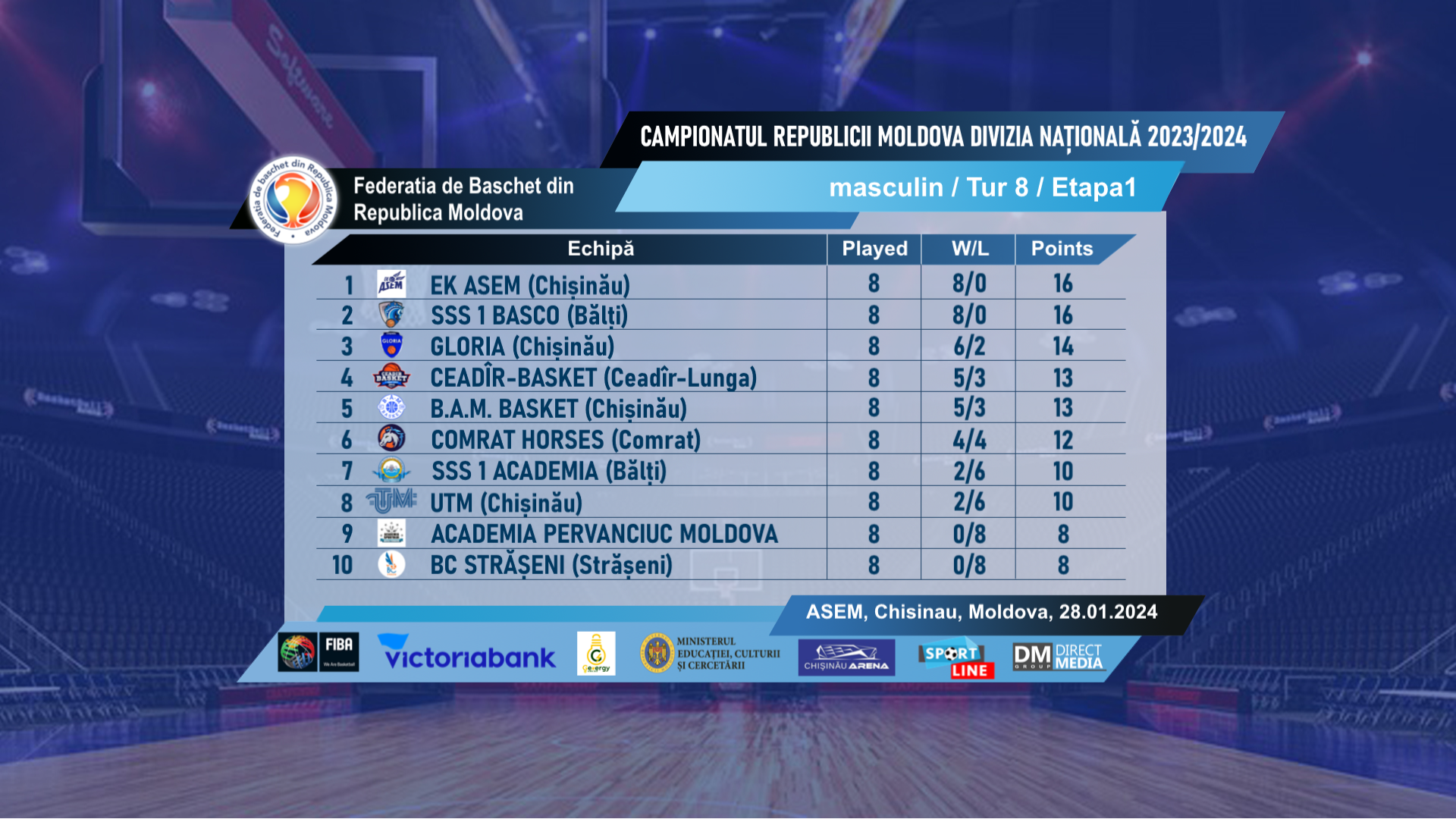 В матче «UTM» (Кишинёв) — «GLORIA» (Кишинёв) победу одержала команда «GLORIA» — 74:77 (8:19, 20:26, 18:19, 28:13),