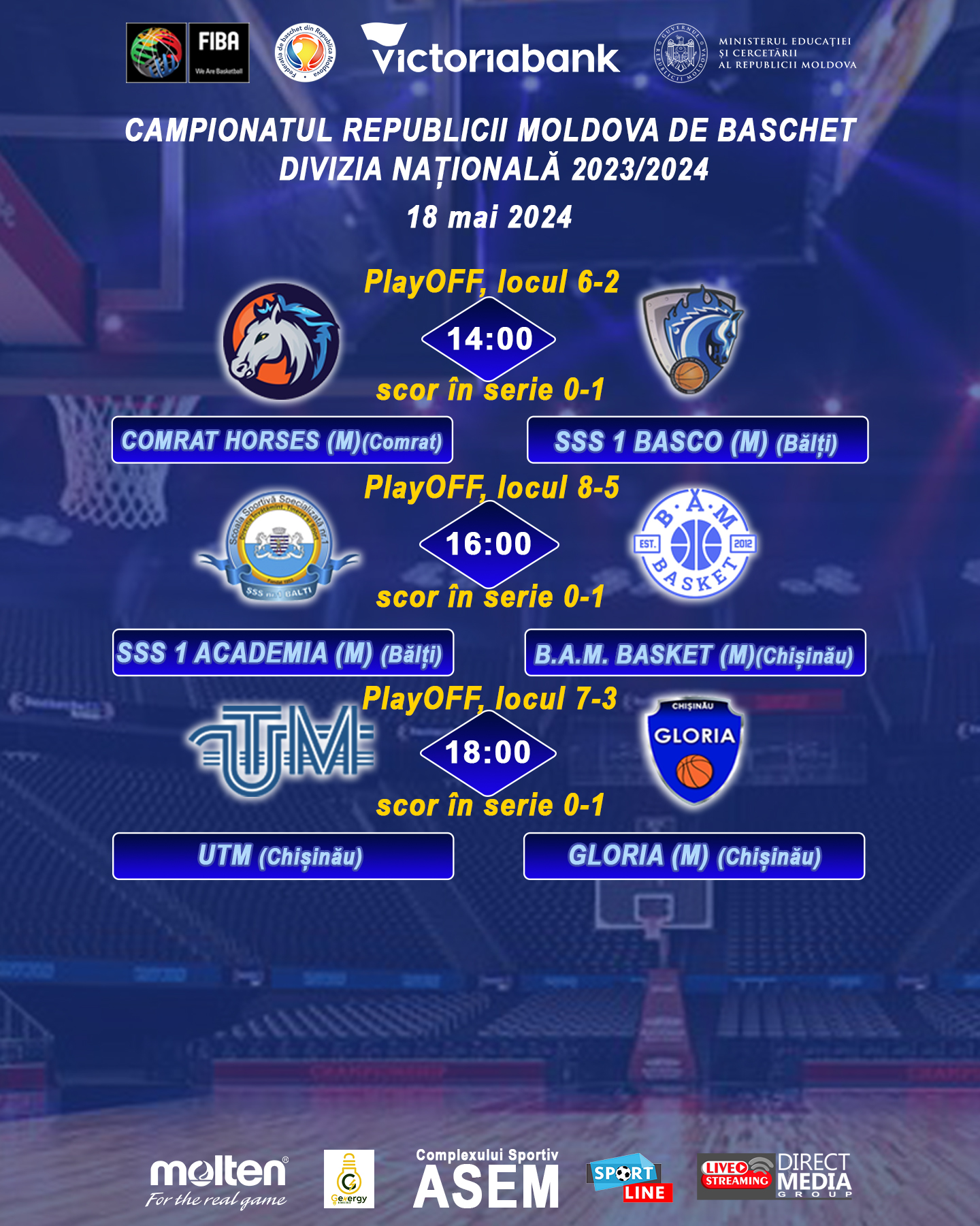 В 14:00 — матч «EK ASEM» (Кишинев) — «UTM» (Кишинев). (матч за 3-4 места).