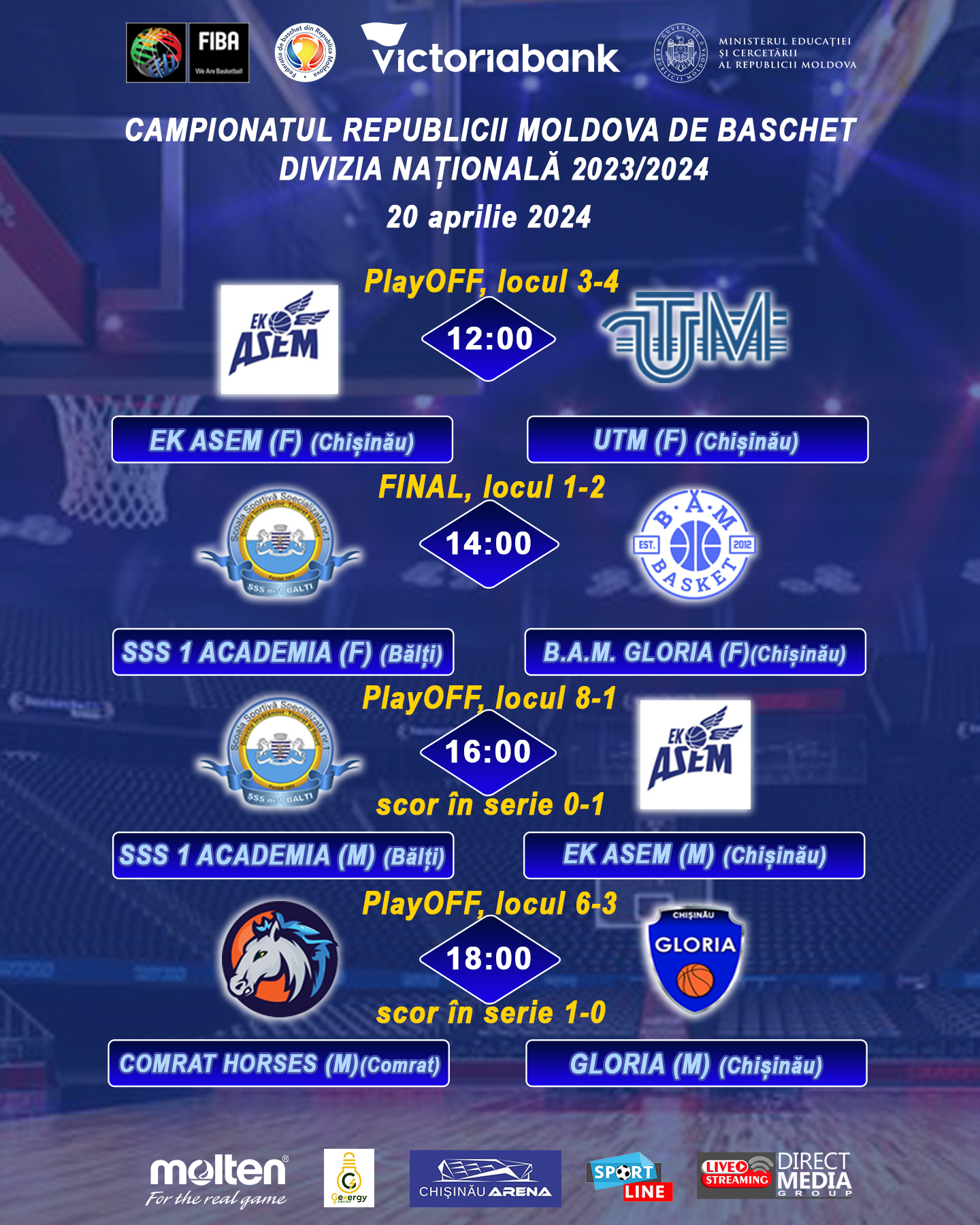 Три матча мужских команд в серии PlayOFF состоятся состоятся в зале с/к Arena Chișinău (ул. Каля Орхеюлуй, 130)