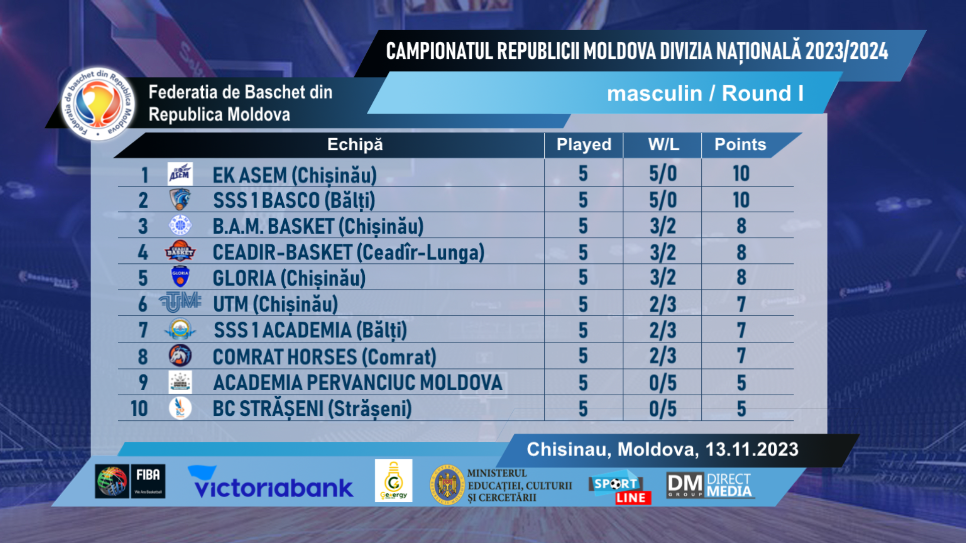 На пятом этапе лидирующую позицию заняла бельцкая команда «SSS 1 ACADEMIA». В пяти матчах она одержала 4 победы, получив 9 очков.