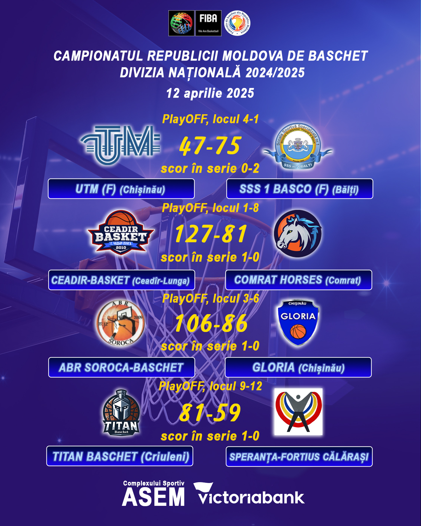 Матчи PlayOFF среди мужских и женских команд пройдут в зале спортивного комплекса ASEM, по адресу: Кишинёв, ул. Albișoara, 86/4.
