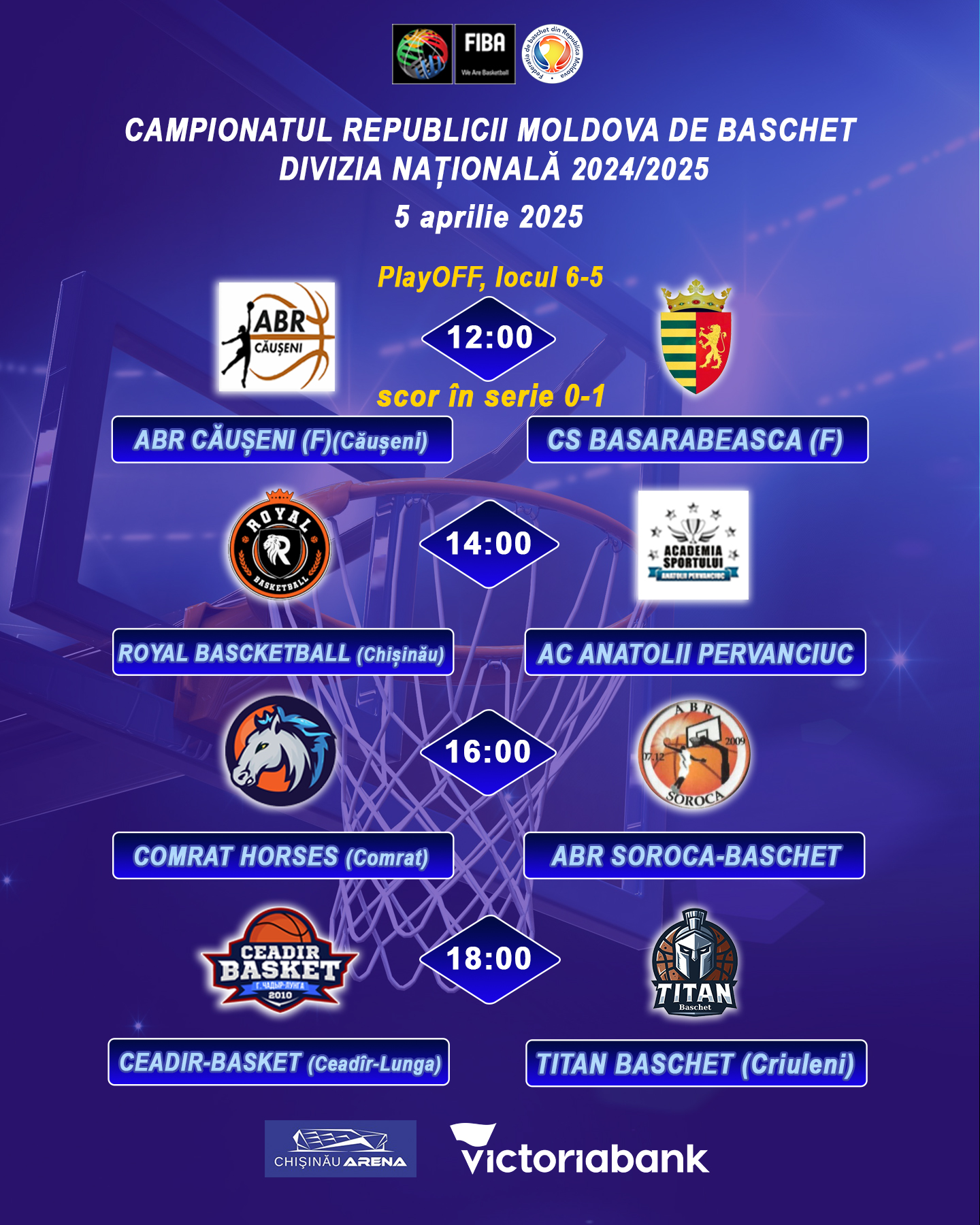 Матчи 22 тура 2 этапа среди мужских команд и PlayOFF среди женских команд пройдут в зале с/к Arena Chișinău (ул. Каля Орхеюлуй, 130).