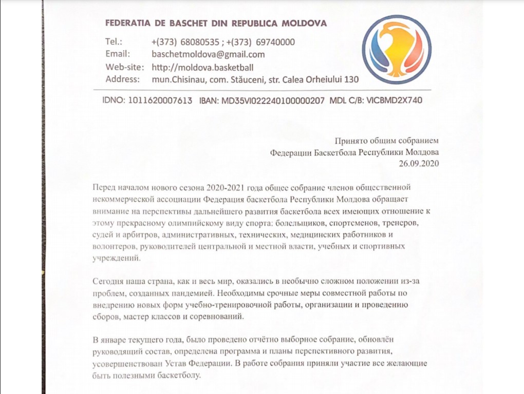 Я остаюсь в вашем распоряжении, для дальнейшего обсуждения темы обозначенной выше, и искренне надеюсь что мы будем работать совместно для развития баскетбола в Республике Молдова.