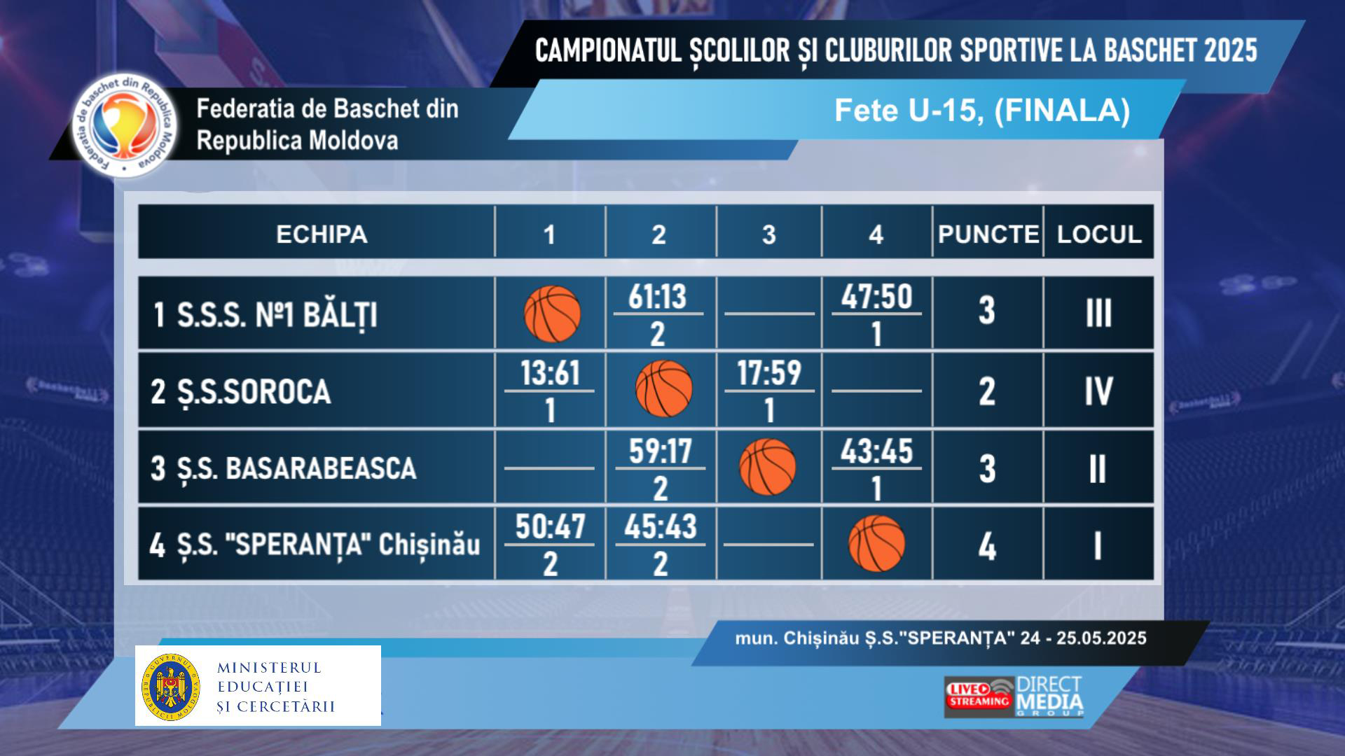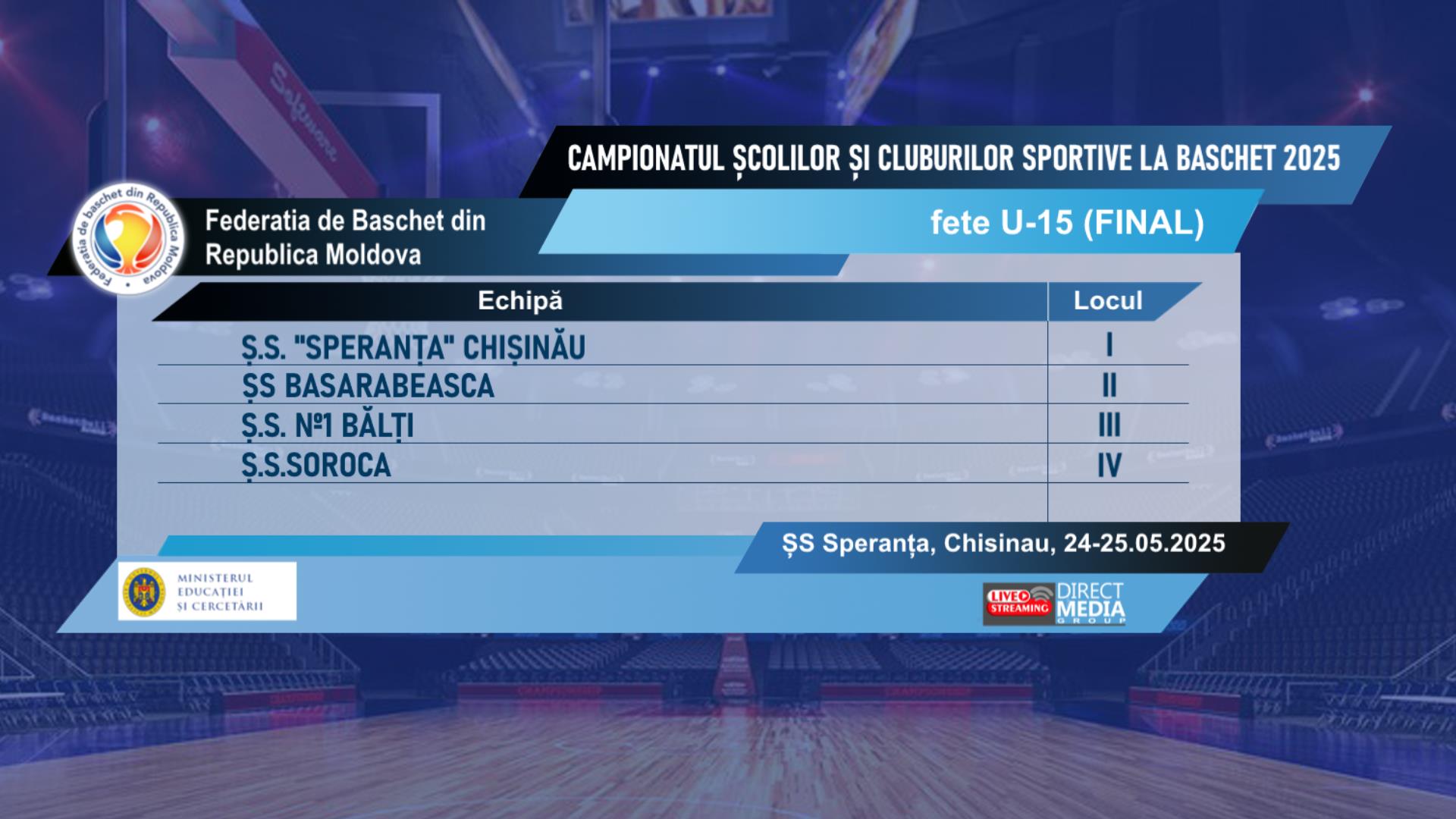 В спортивной школе «SPERANȚA» с 24 по 25 мая 2025 проходила Финальная часть чемпионата спортивных школ и клубов U-15 (девушки).