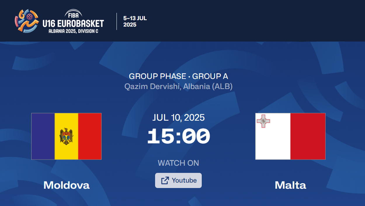 10 июля 2025 Чемпионат EuroBasket-2025 U16. Соперницами женской сборной Молдовы будут хозяева Чемпионата, команда Косово. Начало игры 21:30.