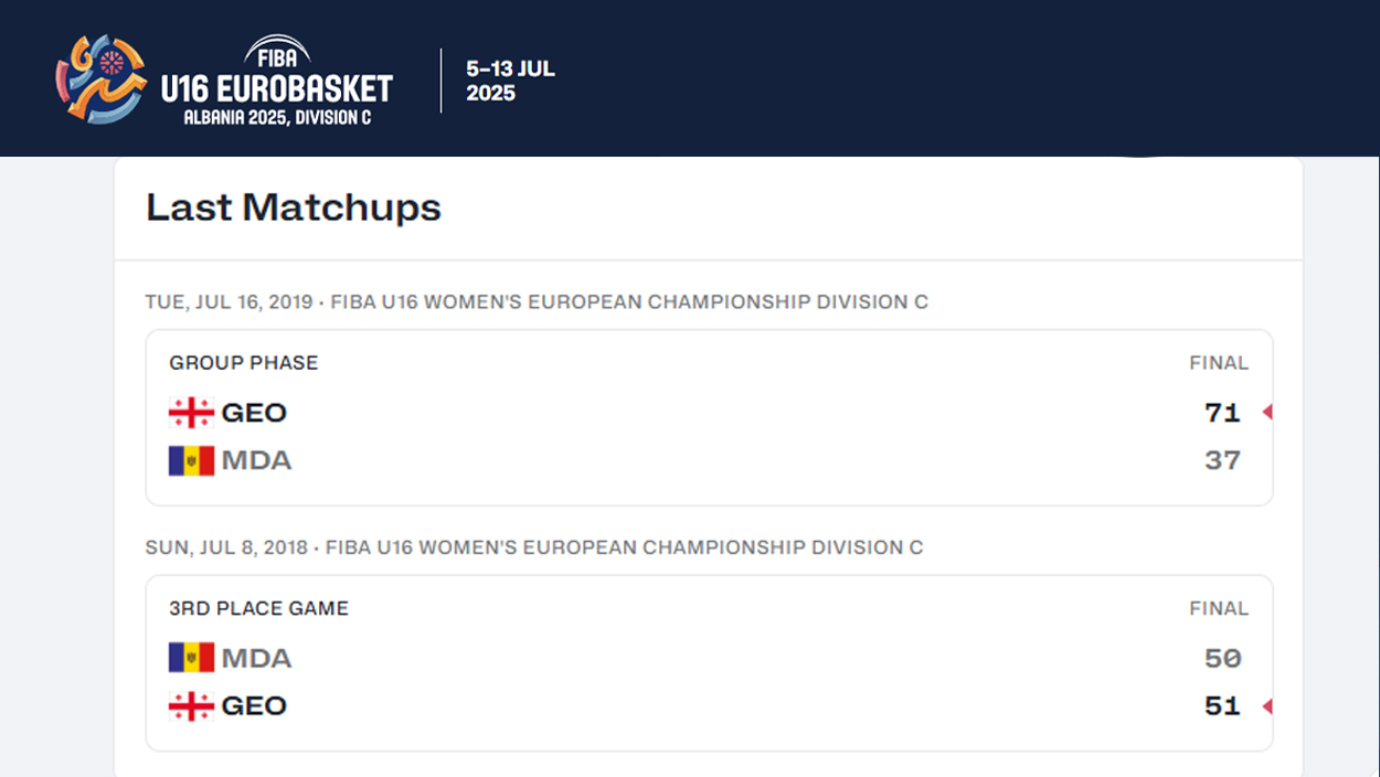 12 июля 2025 Чемпионат EuroBasket-2025 U16. Соперницами женской сборной Молдовы будет команда из Грузии. Начало игры 14:00.