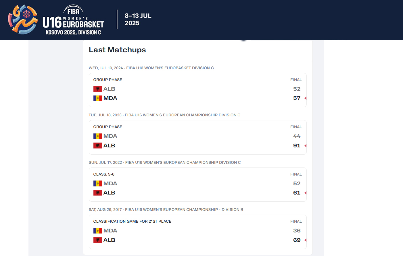 9 июля 2025 Чемпионат EuroBasket-2025 U16. Соперницами женской сборной Молдовы будет команда из Албании. Начало игры 19:00.