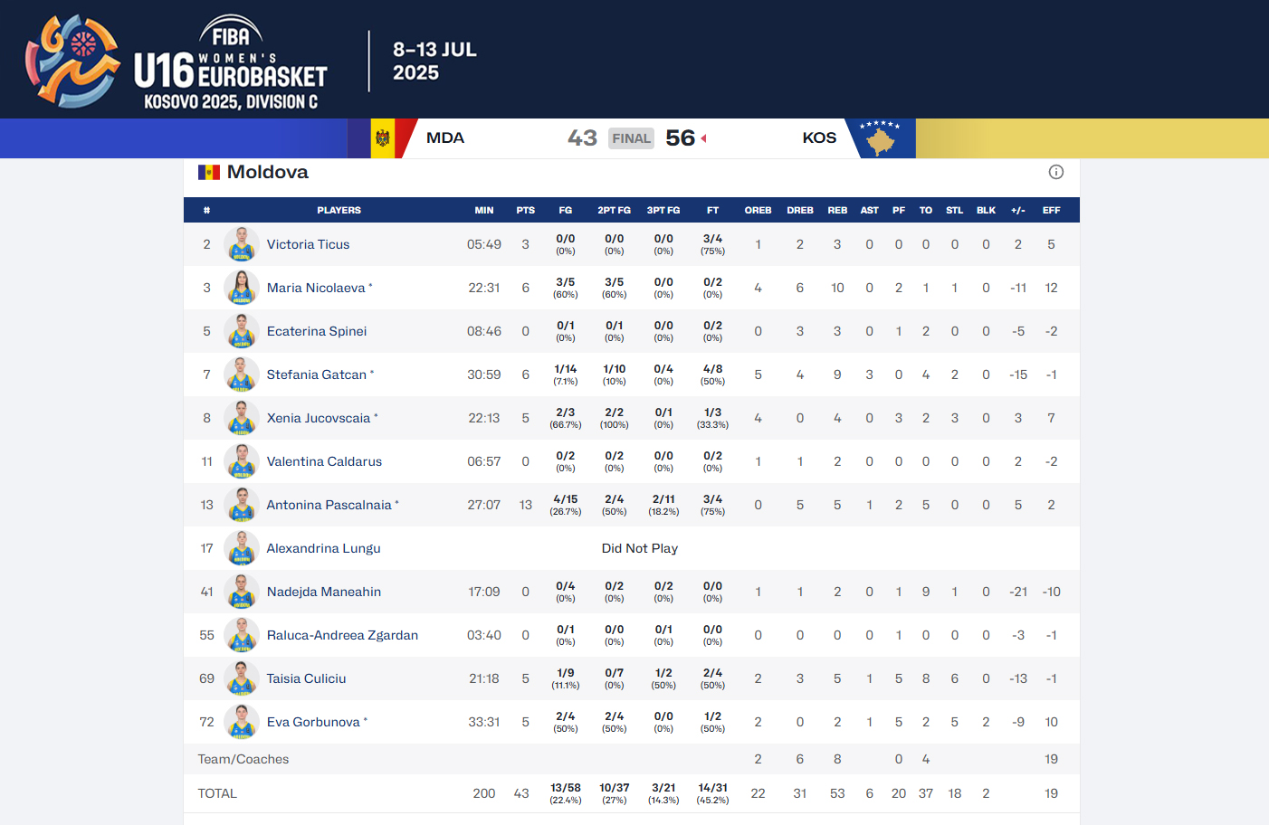 10 июля 2025 состоялась встреча женской сборной (U16) Молдовы и Косово.