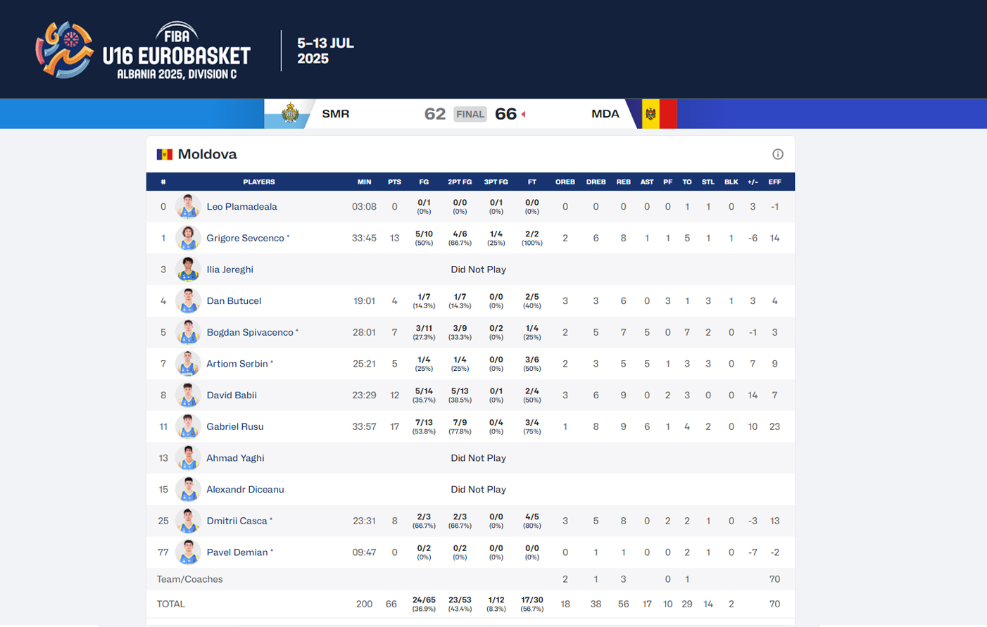 11 июля 2025 состоялась встреча юношеской сборной (U16) Сан Марино и Молдовы.