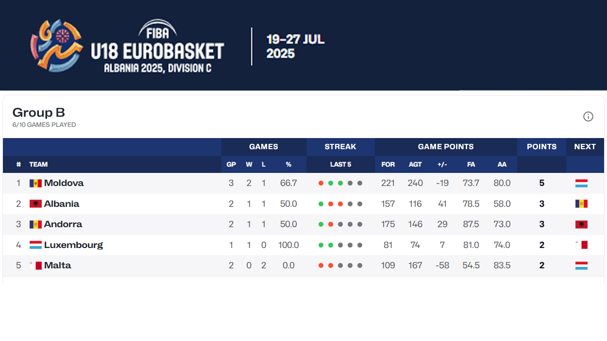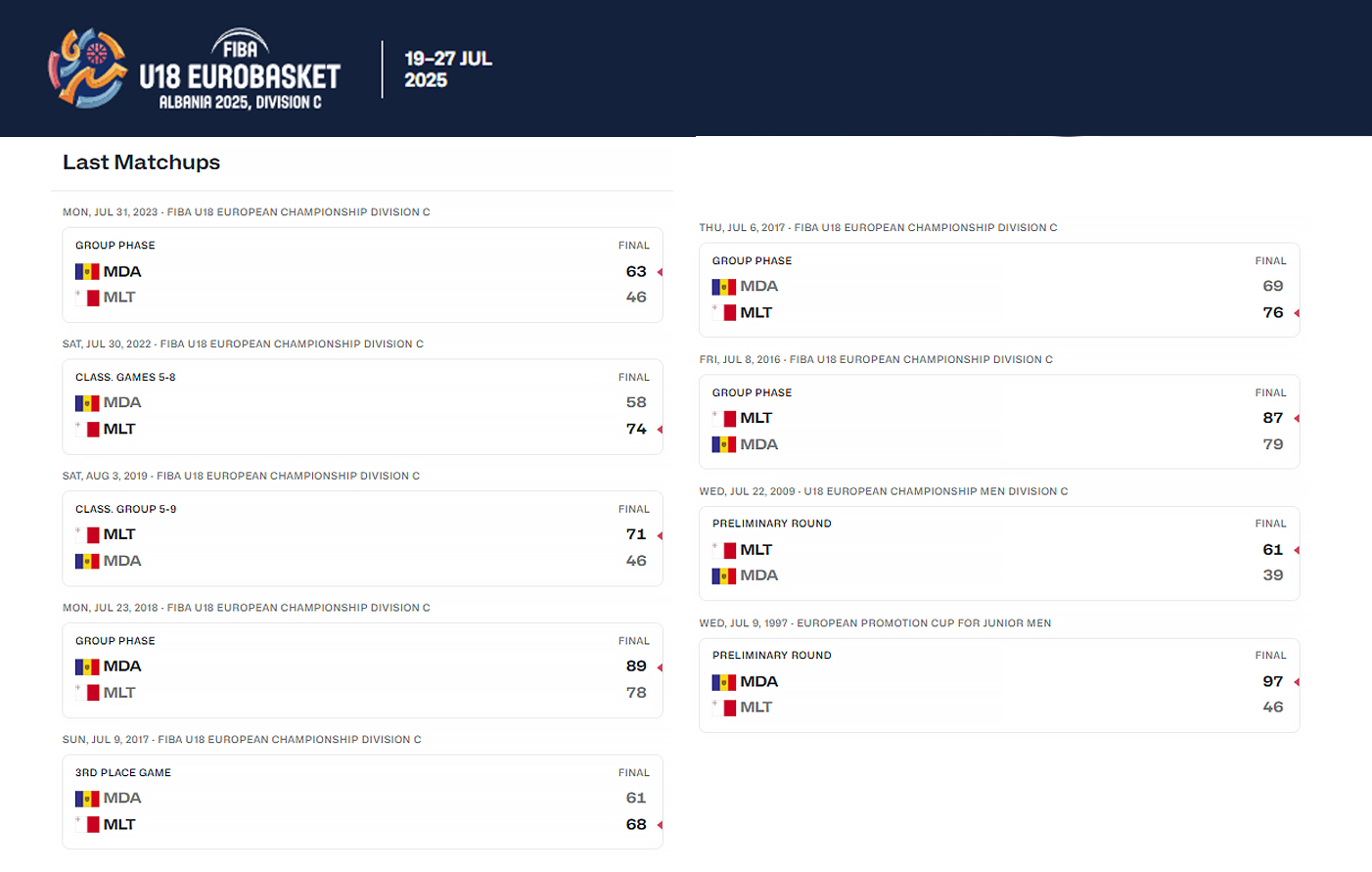 20 июля 2025 состоялась встреча юношеской сборной (U18) Мальты и Молдовы.