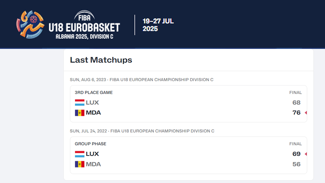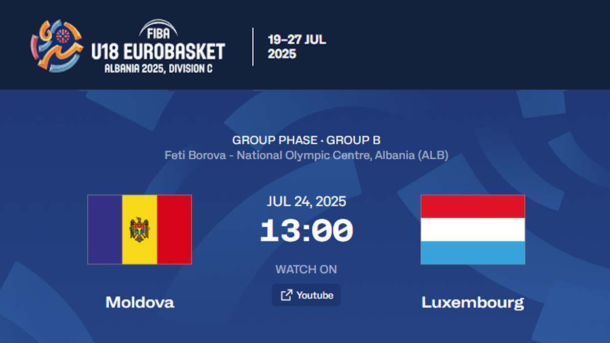 24 июля 2025 Чемпионат EuroBasket-2025 U18. Соперниками мужской сборной Молдовы будет команда из Люксембурга. Начало игры 13:00.